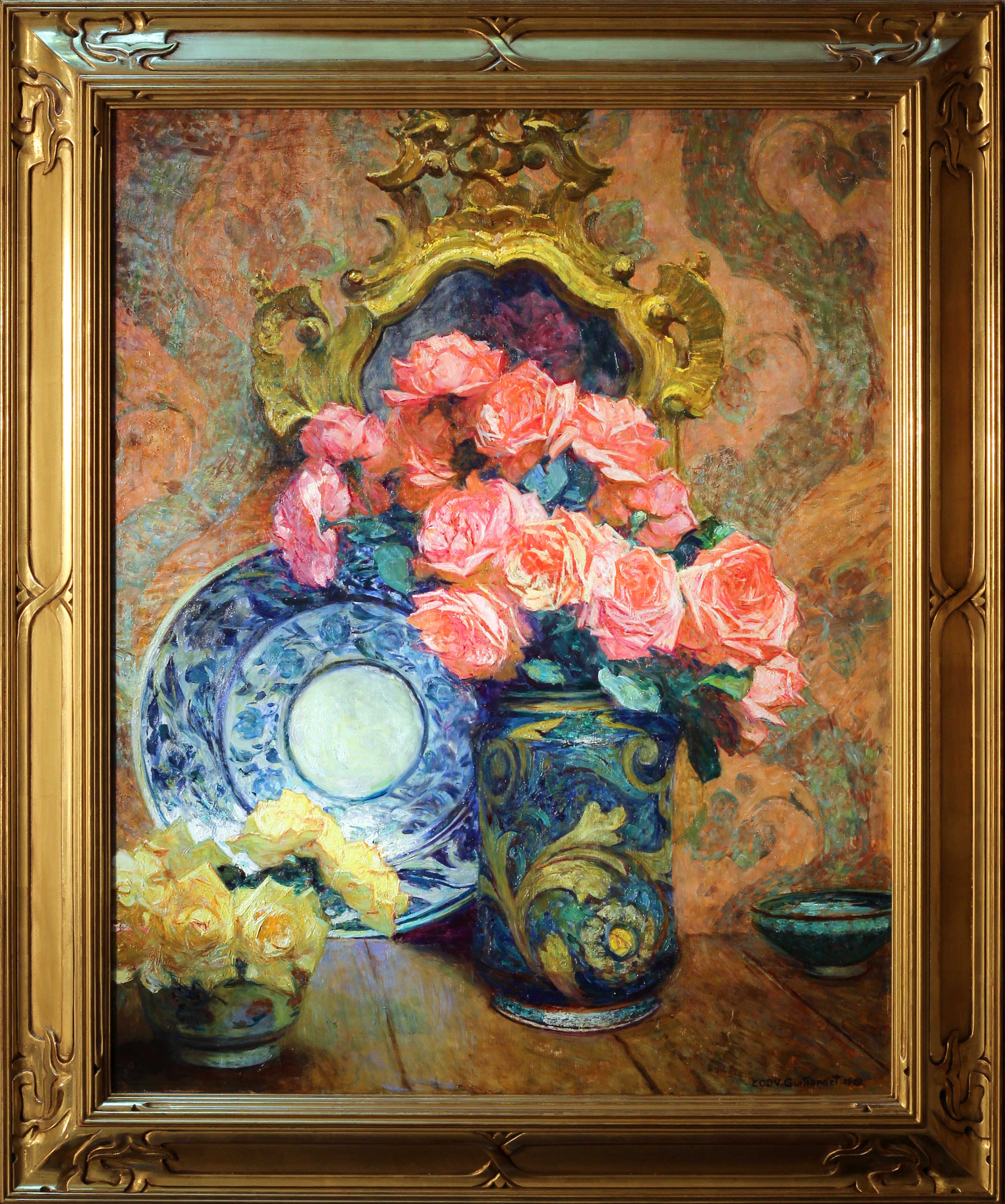 | Émile Octave Denis Victor Guillonnet France, 1872 - 1967 "Bouquets de Roses avec Porcelaine Chinoise" Oil on canvas measures 32" x 25.5"- Signed and dated 1961 lower right |