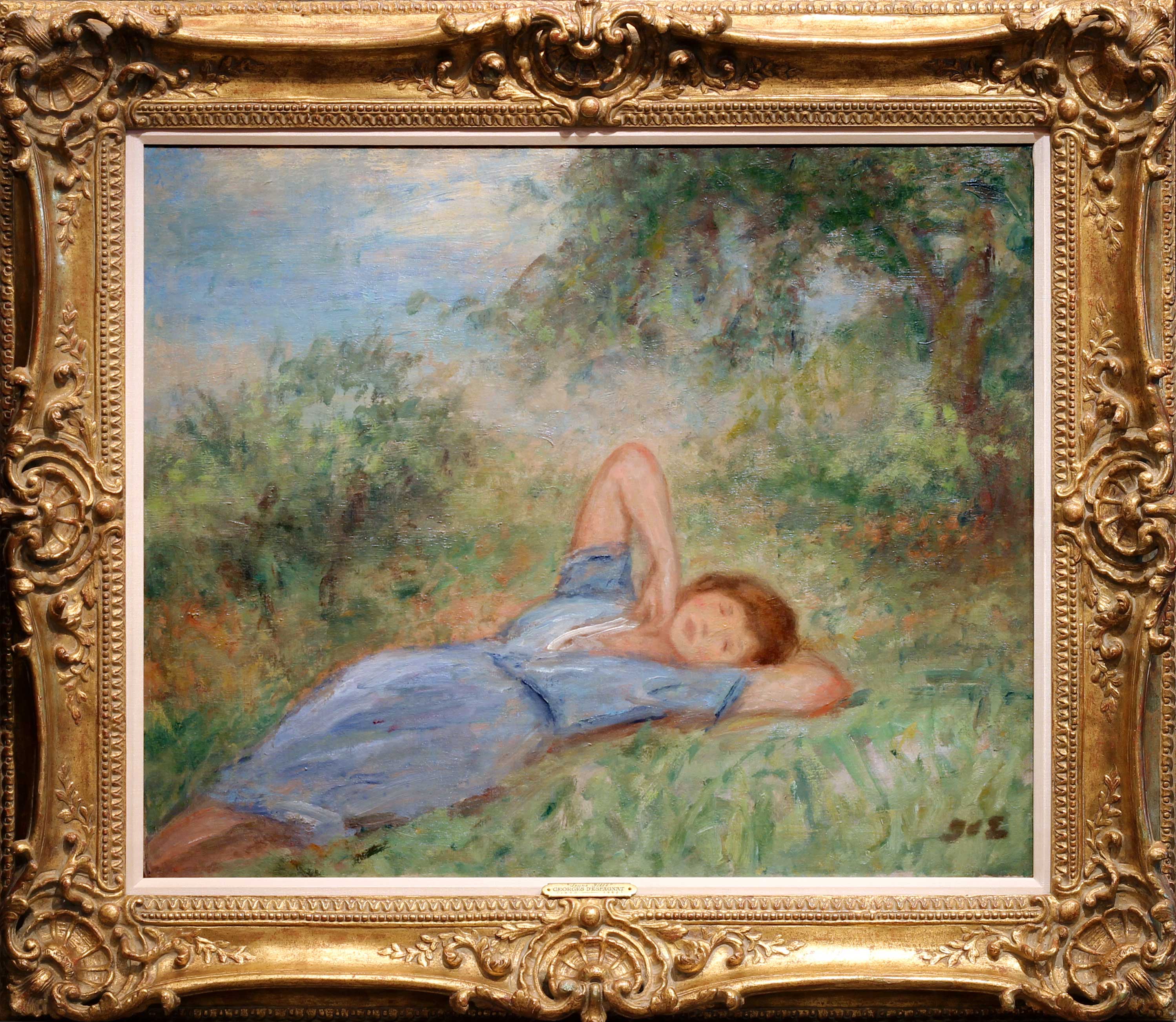 | Pierre Grisot French, 1911 - 1995 "Jeune Fille dans le Parc" Oil on Canvas measures 13.1" x 9.5" (33.2 x 24.2 cm x 92 cm) Signed lower left |