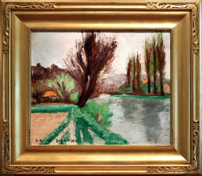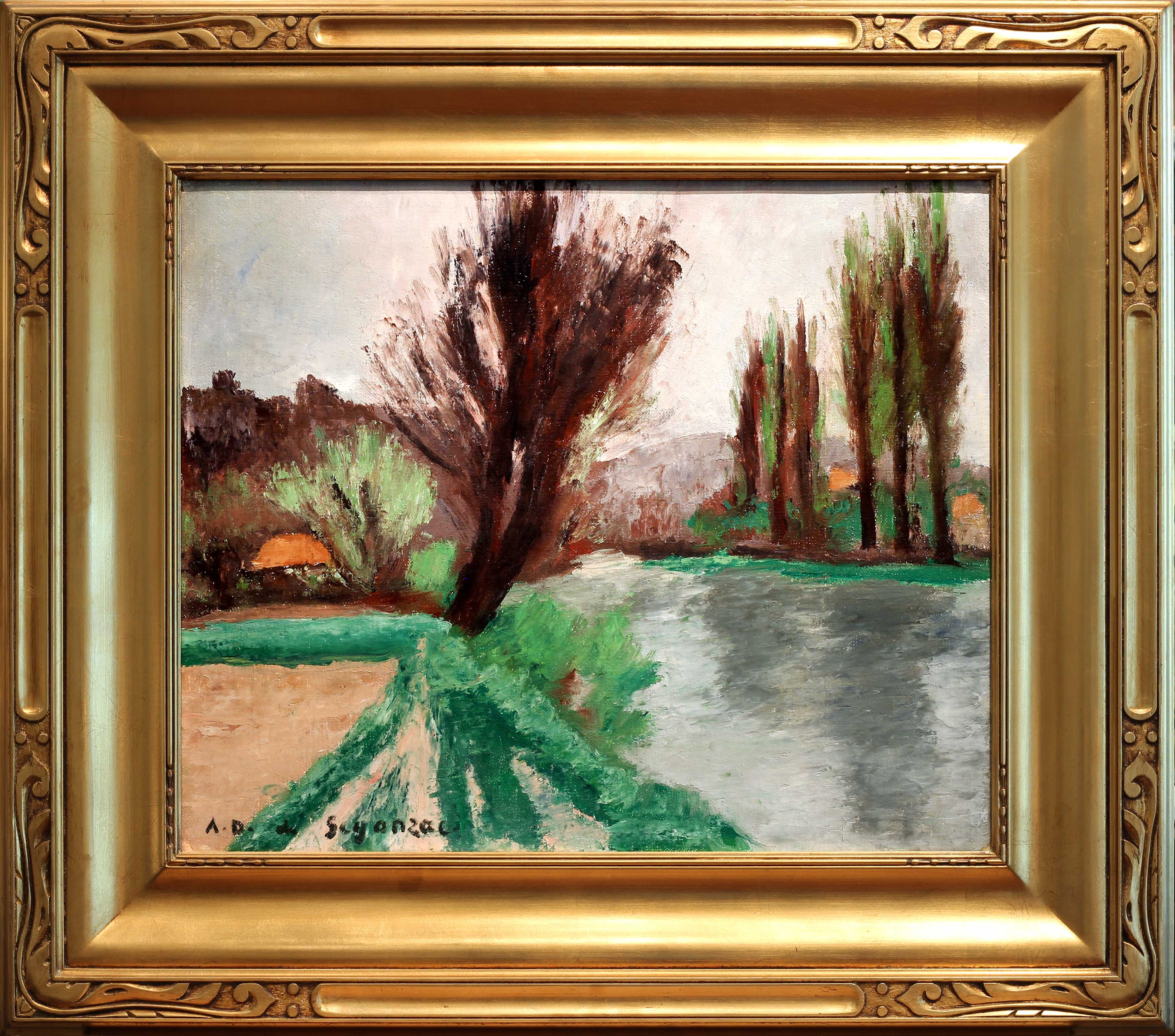 | André Dunoyer de Segonzac French, 1884 - 1974 "Paysage par une Rivière" Oil on Canvas, measures 18" x 21.75" - Signed Lower Left |