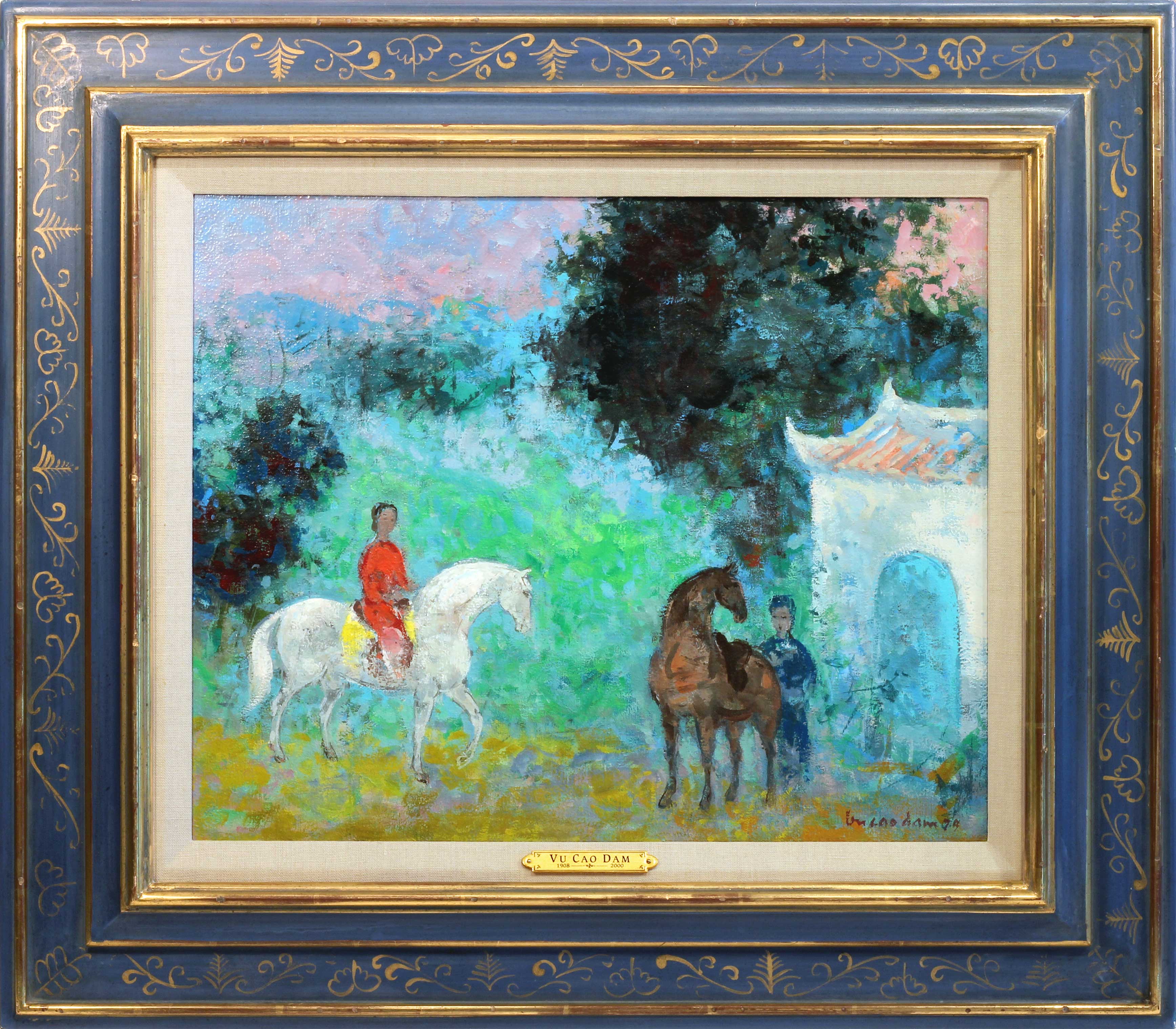 | Vu Cao Dam French, 1908 - 2000 "Le Pagodon ~ The Pagoda" Oil on Canvas measures 15" x 18.25" - Signed and dated '79 lower right Also titled , inscribed and dated (1979) to verso |