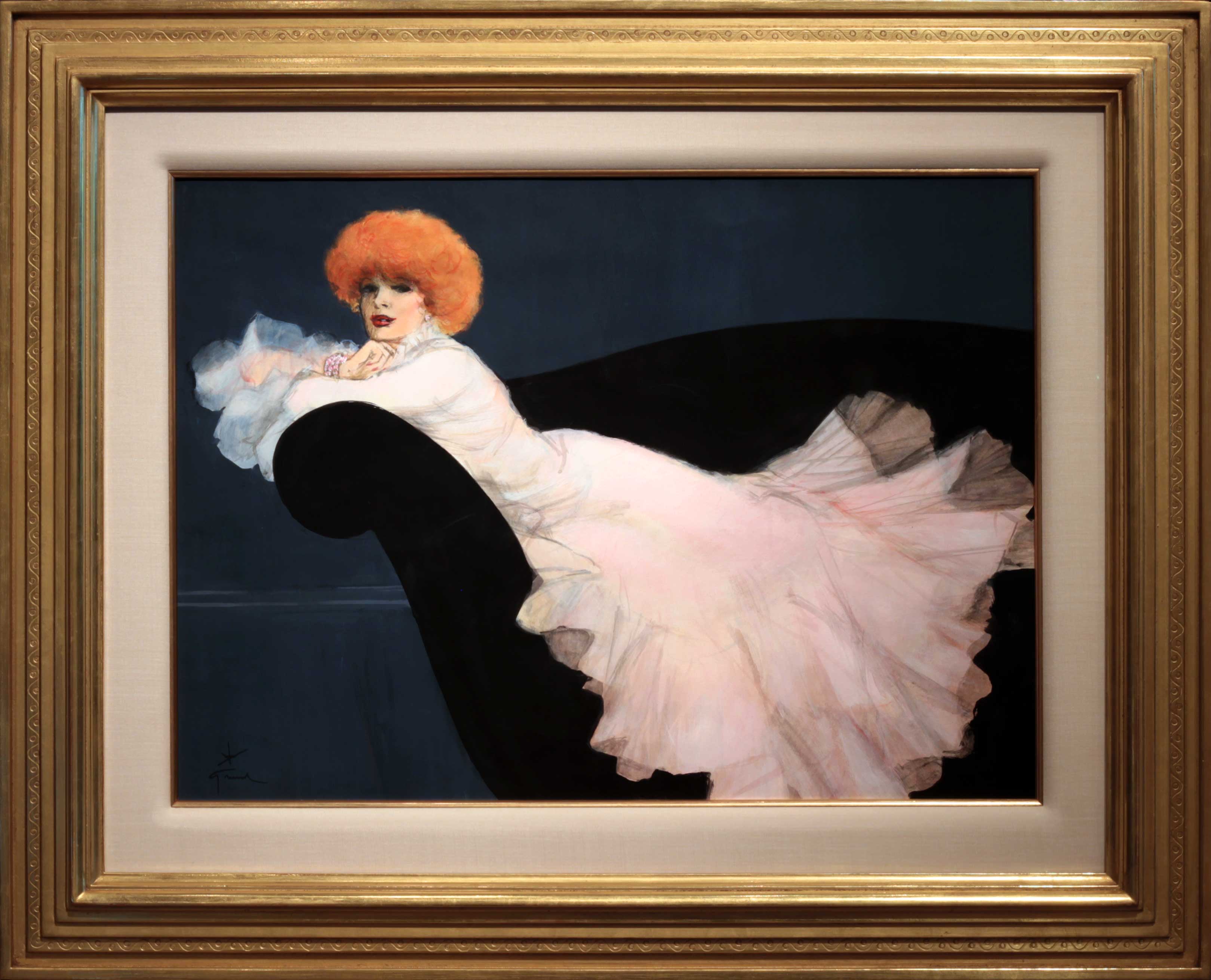 | René Gruau Italy/France, 1909 - 2004 "Le Nègligè Rose" Gouache on Paper measures, measures 18.25" x 25" Signed Lower Left ~ Presented in a fine hand carved gilt frame |