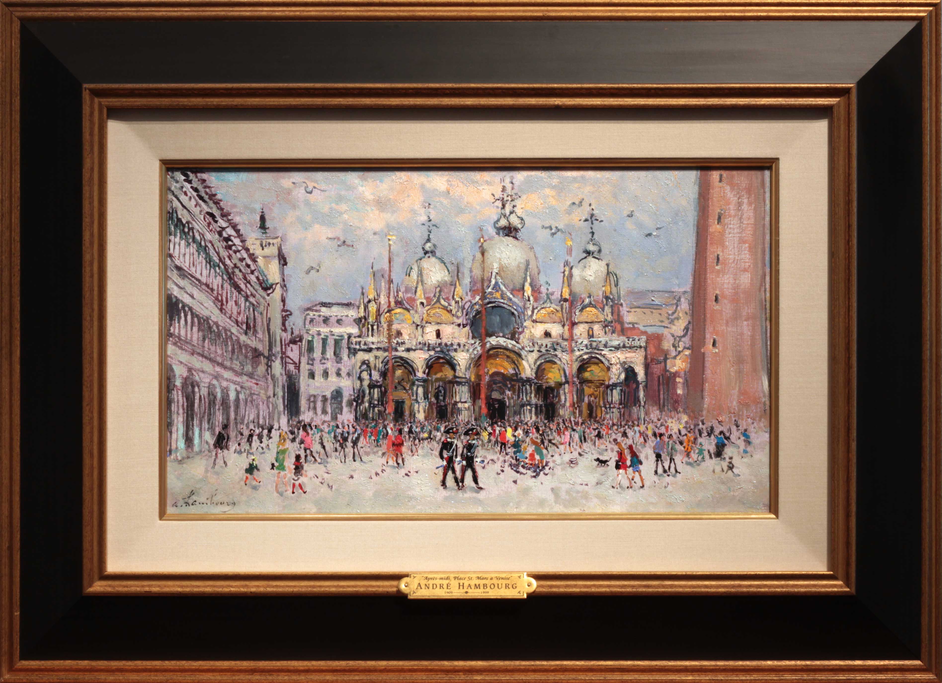 | André Hambourg France, 1909 - 1999 "Après-midi, Place St. Marc à Venise" Oil on stretched canvas 10.7" x 18.1" ~ Signed lower left Titled, inscribed and dated '69' (1969) to verso |